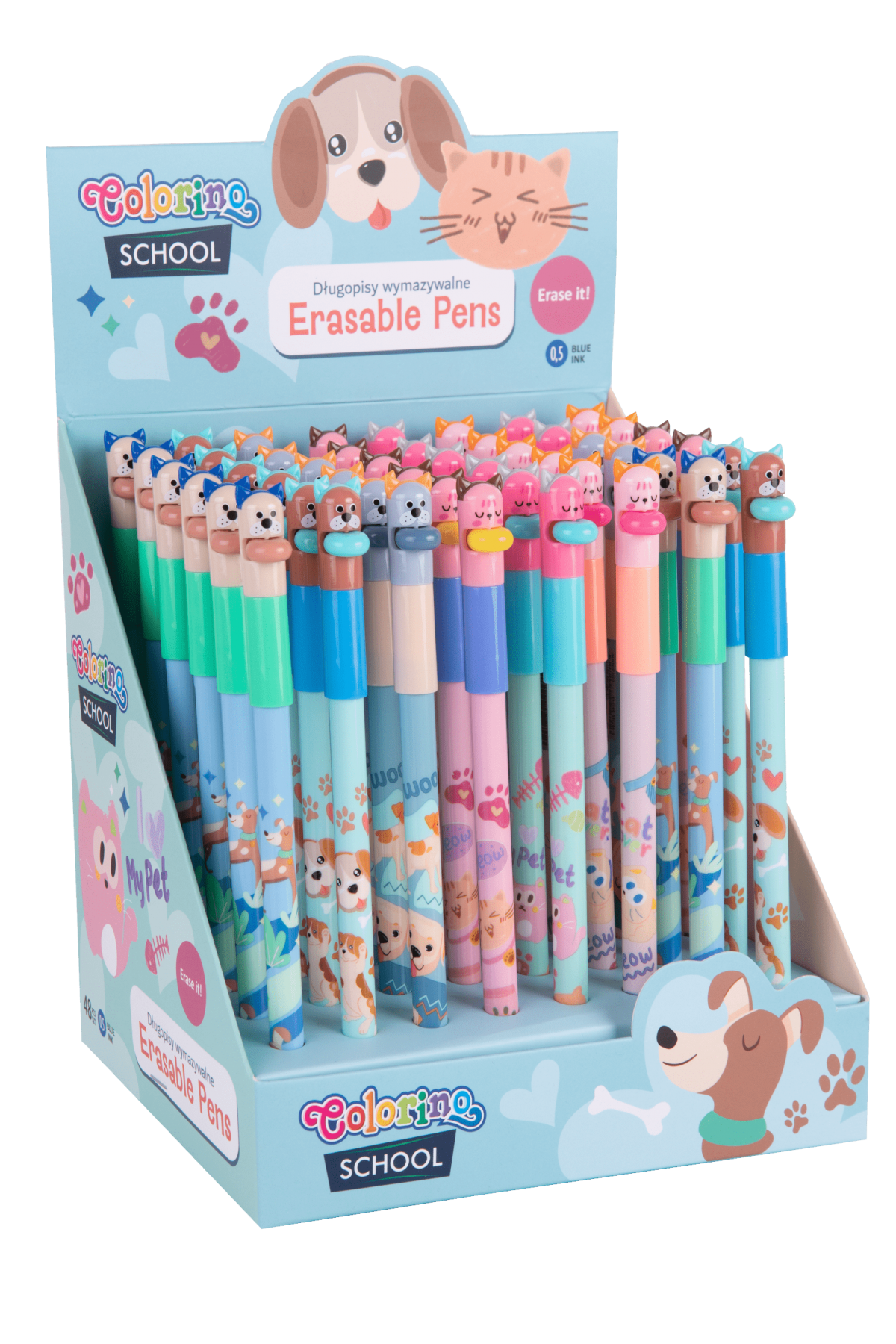 Poznaj urocze długopisy z kolekcji Dogs and Kitties, które rozjaśnią Twój dzień i dodadzą zabawy do każdej notatki! Te wymazywalne długopisy z wesołymi motywami piesków i kotków to idealny wybór dla miłośników zwierząt, łączący funkcjonalność z antystresową frajdą. Wybierz jeden z 6 przeuroczych wzorów i pozwól, by Twoje pisanie stało się prawdziwą przyjemnością!