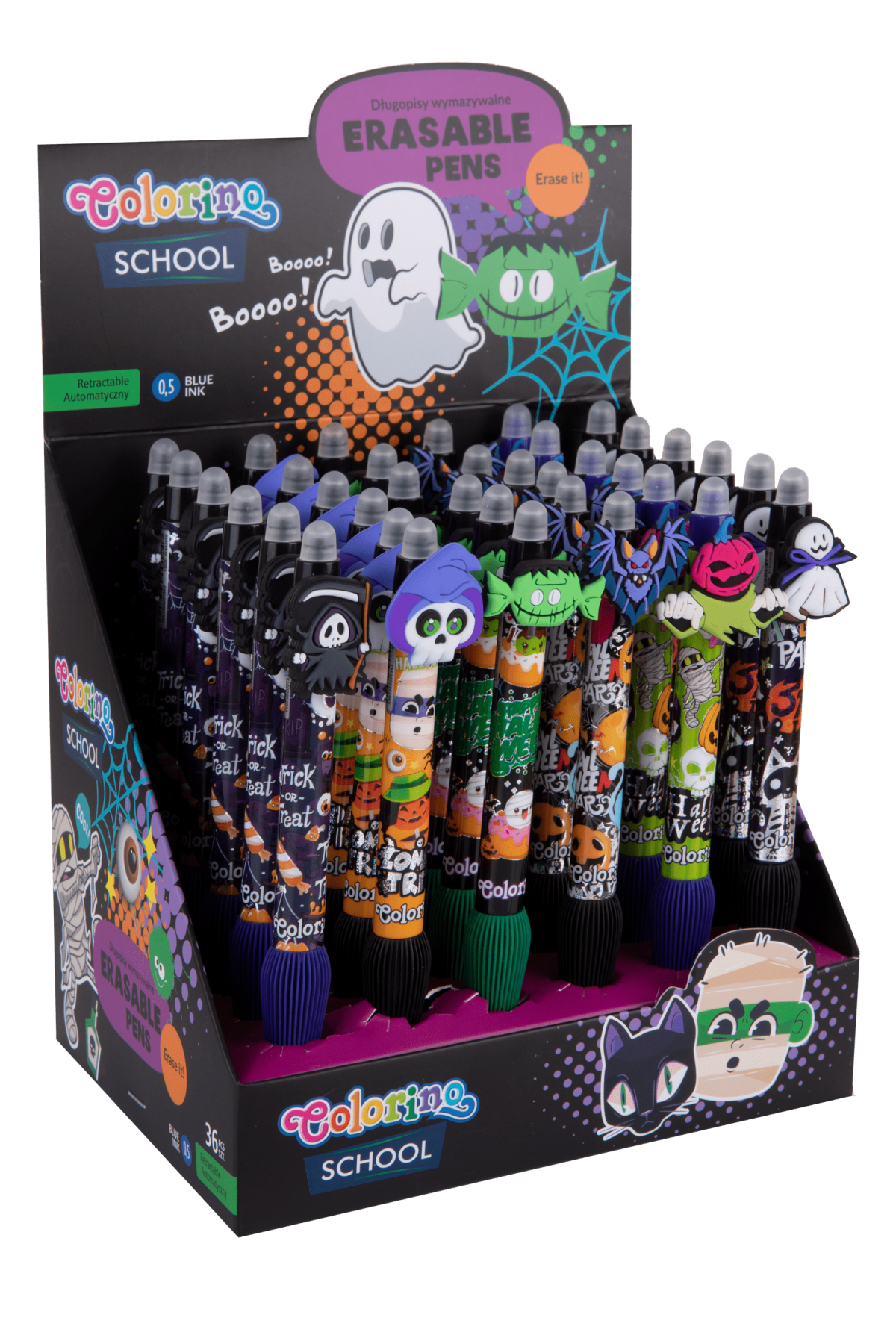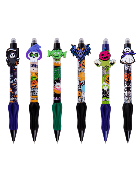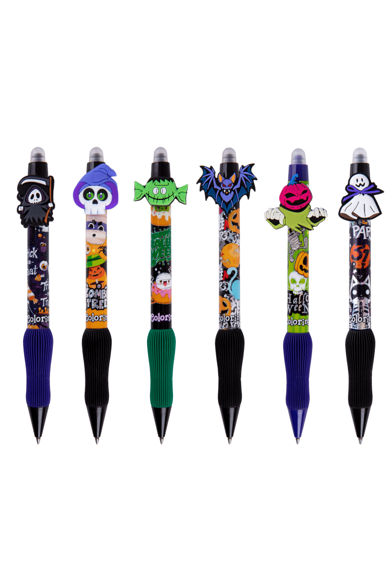 Przenieś swoje notatki w świat Halloween z naszą wyjątkową kolekcją długopisów wymazywalnych! Te upiornie urocze długopisy z kolekcji Halloween to idealny sposób, by dodać odrobinę magii i grozy do Twoich codziennych zapisków. Wybierz jeden z 6 strasznie fajnych wzorów i pozwól, by Twoje słowa zyskały mroczny urok!