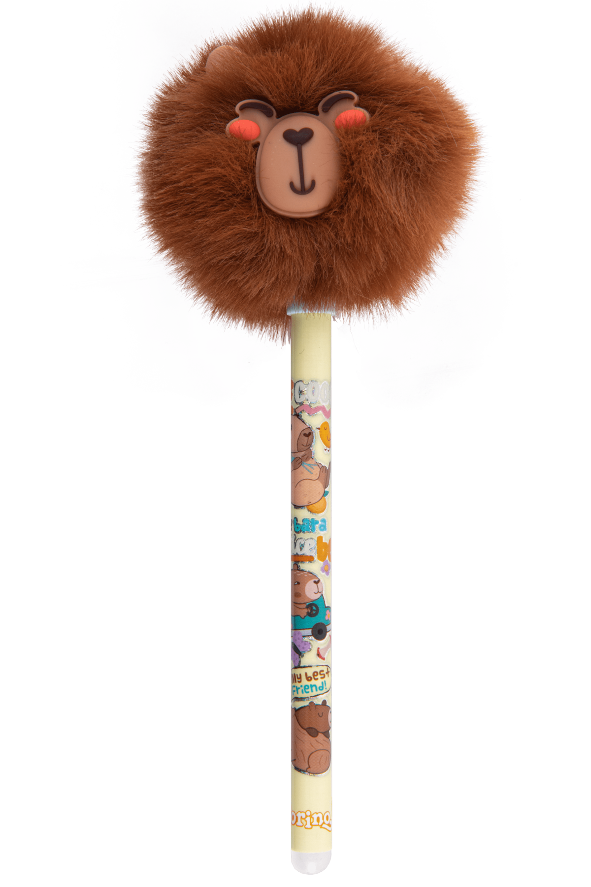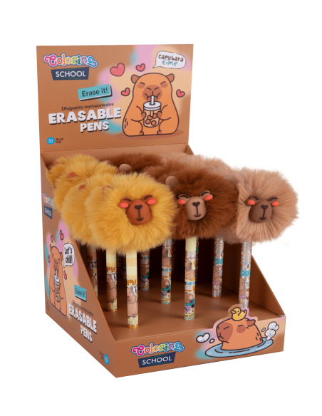 Długopis wymazywalny z pomponem Kapibary Ten uroczy długopis wymazywalny to must-have dla miłośników kapibar! Pisze niebieskim tuszem o grubości 0,5 mm, gwarantując precyzję i komfort pisania. Obudowa w żywych, letnich kolorach dodaje radości, a skuwka z włochatym pomponem w kształcie sympatycznej buźki kapibary sprawia, że pisanie staje się czystą przyjemnością. Idealny dla uczniów, studentów i każdego, kto chce dodać odrobinę uroku do swoich notatek!