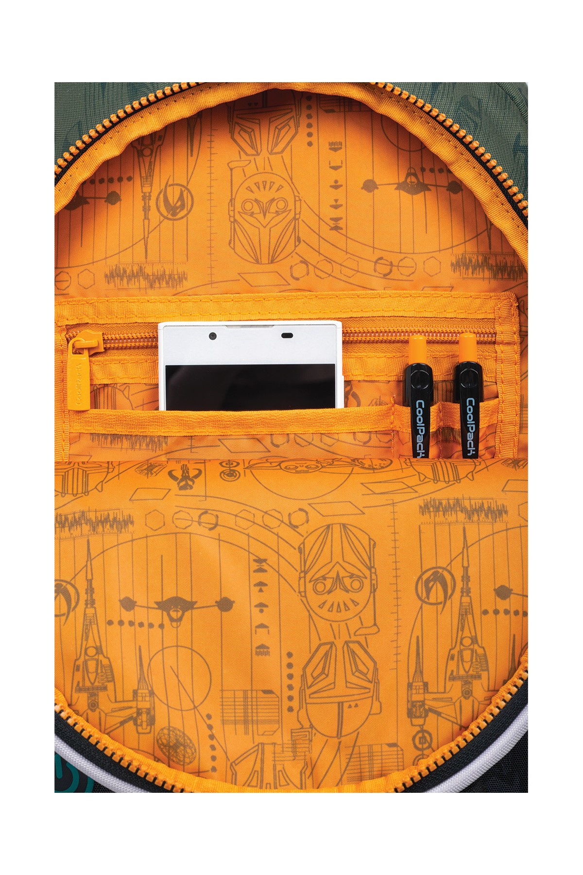 Przednia kieszeń z organizerem zamykana na ekspres