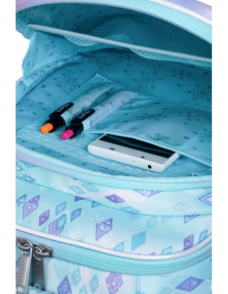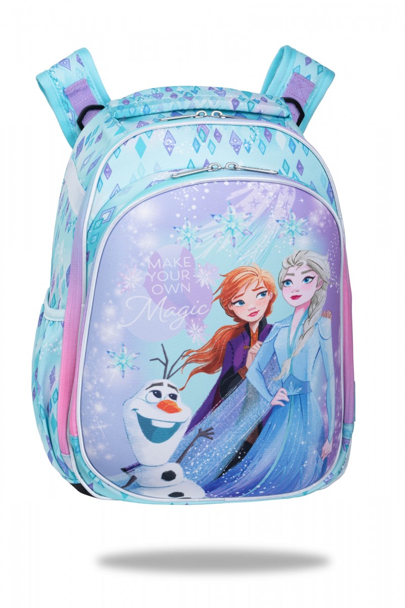 Plecaki Turtle marki Coolpack to nowoczesne, lekkie i trwałe modele tornistrów dla najmłodszych uczniów szkół podstawowych. Wyposażone są w dużą, sztywną komorę, która zapobiega odkształceniom oraz wyprofilowane plecy. Model Turtle został wyposażony w wysokiej jakości dodatkowe elementy, takie jak wyściełane szelki czy kieszeń z organizerem. Zimowa kolekcja Disney Core Frozen pozwoli Twojemu dziecku poznać mroźny świat Elsy i Anny i zacząć nowy rok szkolny we wspaniałym, śnieżnym stylu ;)
